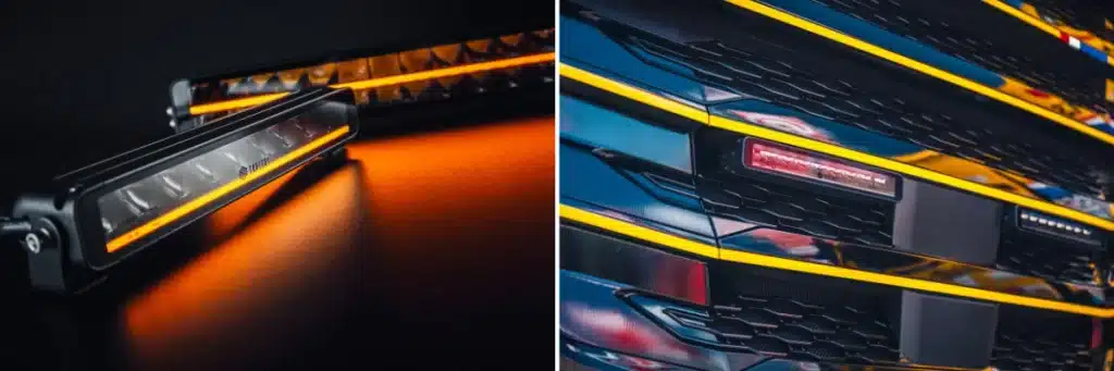 - Uniek glow-effect: De hele lens licht op in wit of amber DRL (dagrijverlichting) – geen aparte strip, maar een strakke, premium glow die de hele bar vult. Dit geeft een moderne, high-end look zonder te overheersen.