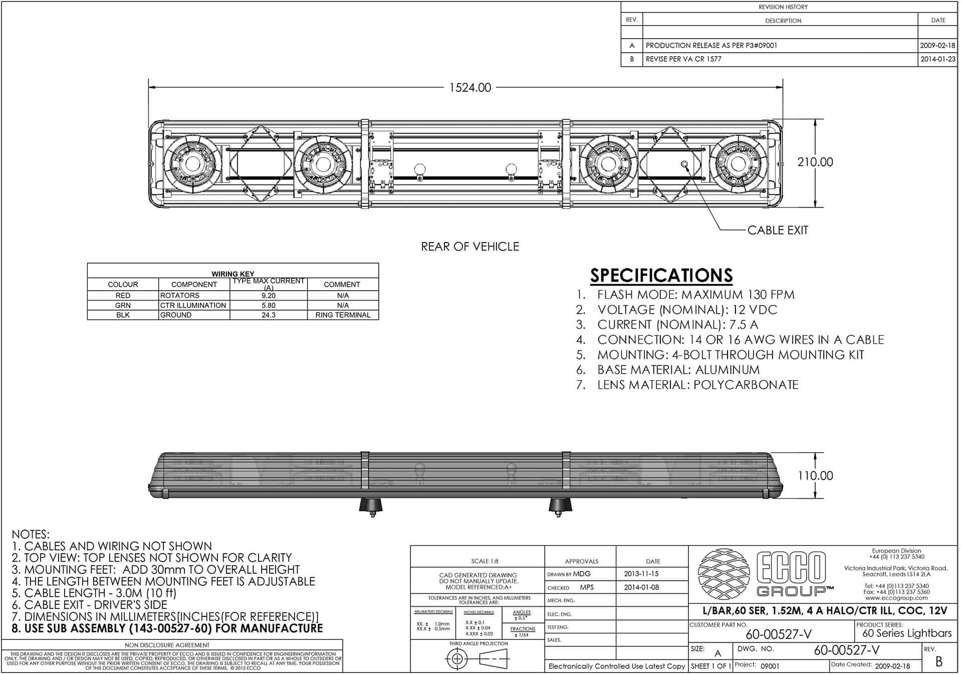 De ECCO ESG 60 serie HALO is een LED zwaaibalk met een lengte van 1524 mm, ontworpen voor voertuigen die behoefte hebben aan visuele signalering binnen een 12 V installatiesysteem. Dit model beschikt over een aluminium behuizing met een polycarbonaat lens en is voorzien van een 300 cm kabel met open draadeind voor flexibele elektrische aansluiting. De montage kan naar wens worden aangepast met een vrij instelbare beugel. De certificeringen CE, ECE R10 en ECE R65 maken deze LED zwaaibalk geschikt voor gebruik binnen de Europese regelgeving, inclusief toepassingen op de openbare weg.