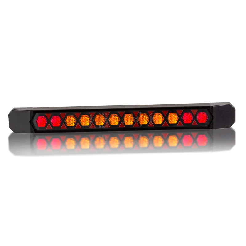 Dit LED achterlicht uit de Lizard-serie van Horpol is ontworpen voor horizontale montage op voertuigen met een spanningsbereik van 12–24 V. Dankzij de compacte afmetingen van 252x27x20 mm is het geschikt voor installatie in beperkte ruimtes. Dit achterlicht combineert de functies: achterlicht, remlicht en knipperlicht, wat zorgt voor een efficiënte en overzichtelijke lichtsignalisatie conform ECE-R148.