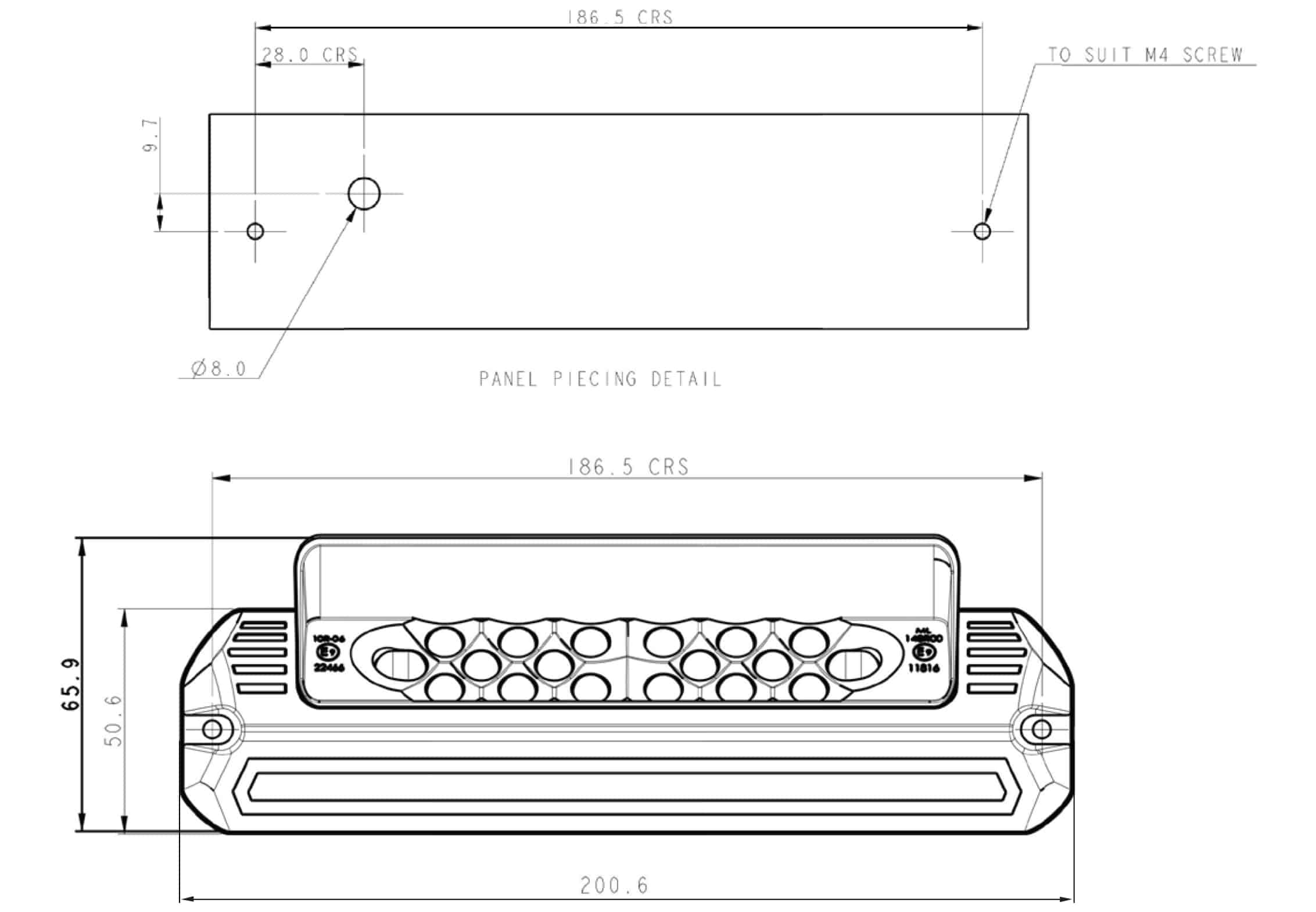 De werklamp werkt op 12–24 V en genereert een lichtopbrengst van 900 lm bij een opgenomen vermogen van 25 W. Met een afmeting van 200,6 x 26,6 x 65,9 mm kan de lamp eenvoudig worden geïntegreerd in uiteenlopende voertuigconfiguraties. De lamp is voorzien van een open draadeind-connector en geschikt voor opbouwmontage. Deze LED werklamp voldoet aan de eisen van IP67, CE, ECE R10, ECE R148 (R23) en ADR, wat de inzetbaarheid onder uiteenlopende omstandigheden bevestigt.