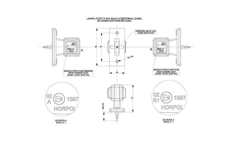 De Horpol MB-4631RW maakt deel uit van de MB-4600 serie en is ontworpen als LED breedtelamp voor toepassing op bedrijfsvoertuigen en aanhangwagens. Deze unit biedt een oriëntatiefunctie met rood en wit licht, als achter markeerlicht. De opbouwmontage wordt ondersteund door een behuizing van rubber en een slagvaste lens van polycarbonaat, geschikt voor een breed toepassingsgebied onder uiteenlopende omstandigheden.