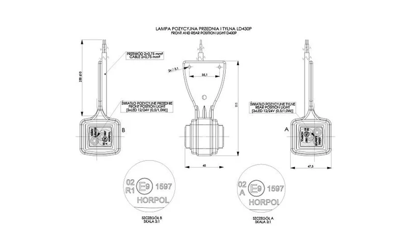 De Horpol MB-4602RW uit de MB-4600 serie is een LED breedtelamp die geschikt is voor opbouwmontage. Het model combineert rood en wit licht en is voorzien van een open draadeind met een kabellengte van 20 cm. De behuizing is vervaardigd uit rubber, wat bijdraagt aan de slagvastheid, terwijl de polycarbonaat lens voor een efficiënte lichtverspreiding zorgt.