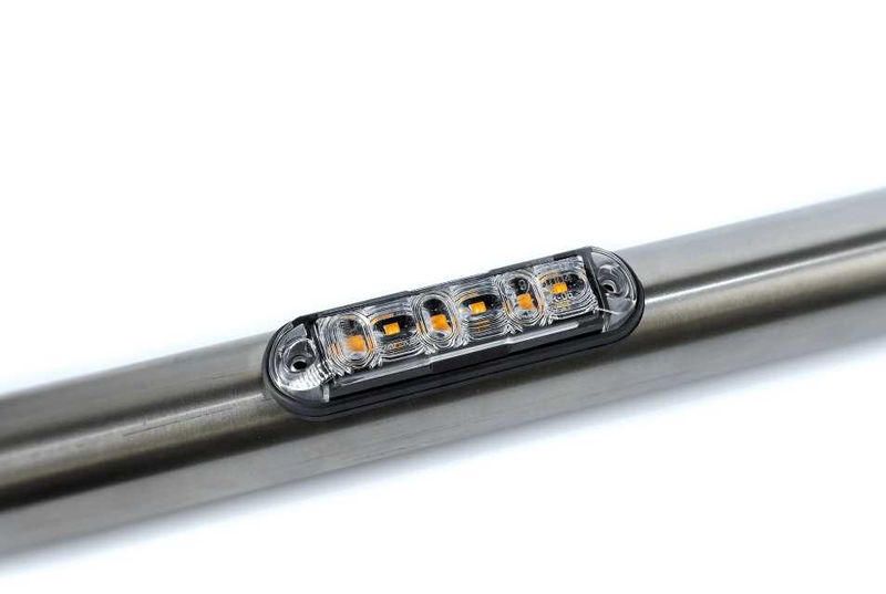 Deze LED flitser voldoet aan de IP68 norm en is gecertificeerd volgens CE, ECE-R10 en ECE-R65, wat betekent dat de flitser geschikt is voor professioneel gebruik en storingsvrij blijft binnen elektromagnetisch gevoelige omgevingen.