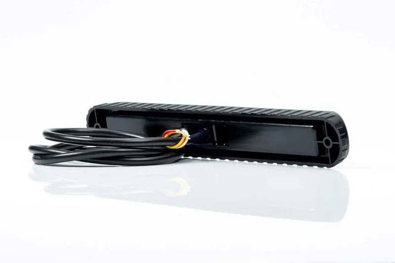 Dit LED achterlicht combineert de functies: achterlicht, remlicht en knipperlicht. De unit wordt geleverd met een 100 cm lange kabel en een open draadeind voor directe elektrische aansluiting op 12–24 V boordsystemen. De behuizing en lens zijn vervaardigd uit polycarbonaat, een materiaal dat bestand is tegen invloeden van buitenaf. Dit model is conform CE, ECE-R10 en ECE-R148 goedgekeurd en voldoet aan IP68, wat een volledige stof- en waterdichtheid garandeert.