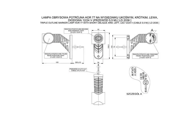 De Horpol MB-4761RWA uit de MB-4700 serie is een LED breedtelamp geschikt voor gebruik op voertuigen met een spanningsbereik van 12–24 V. Deze breedtelamp combineert de functies: achter markerlicht en zij markerlicht. Dankzij de uitvoering in drie lichtkleuren (rood, wit, amber) biedt dit model rondom zichtbaarheid, wat bijdraagt aan de herkenbaarheid en veiligheid van het voertuig in diverse situaties.