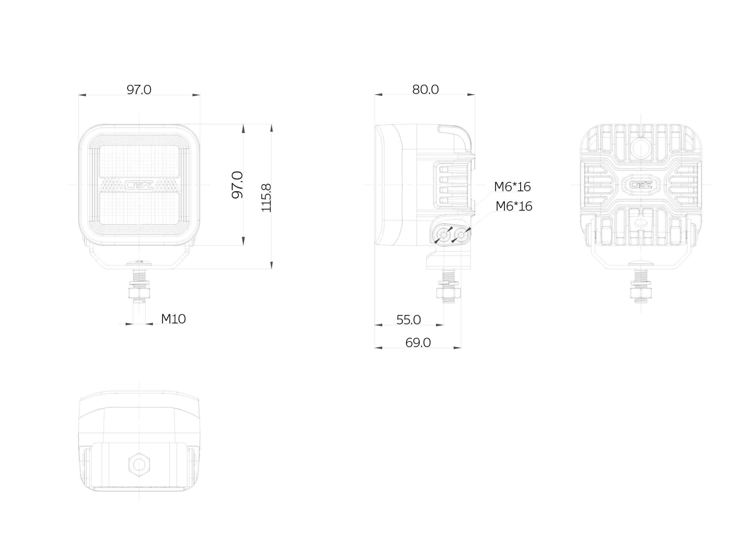 De OZZ SQR serie is ontworpen voor gebruik als werklamp en waarschuwingsverlichting op 12–24 V voertuigen binnen industriële, agrarische en transporttoepassingen. Deze vierkante LED-unit combineert een robuuste aluminium behuizing met een slagvaste polycarbonaat lens voor duurzaamheid onder zware omstandigheden. Met een lichtkleurcombinatie van amber en wit biedt dit model zowel werkverlichting als dubbele flitsfunctie voor verhoogde zichtbaarheid.