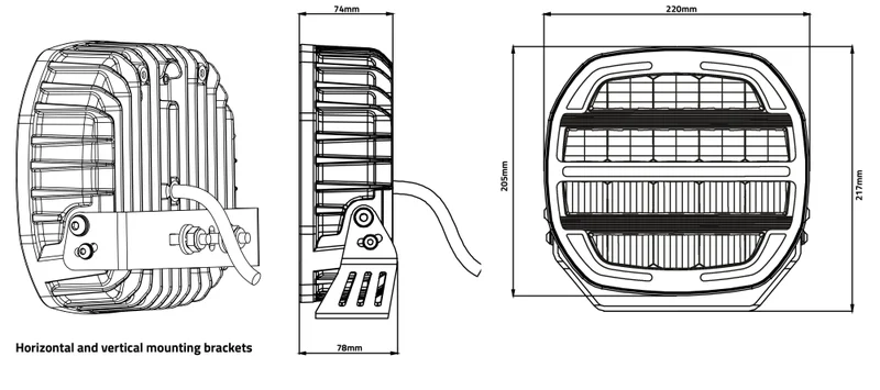 De verstraler is voorzien van een robuuste aluminium behuizing, een polycarbonaat lens en wordt aangesloten via een 6-PIN’s Deutsch connector met een 300 cm lange kabel. Dankzij de IP68-classificatie is het product beschermd tegen stof en langdurige onderdompeling. De Phantom verstraler voldoet aan CE, ECE R10, ECE R148 en ECE R149 normen, wat zorgt voor probleemloze integratie in professioneel voertuignetwerk. De montage geschiedt via opbouw, met afmetingen van 220x205x74 mm.