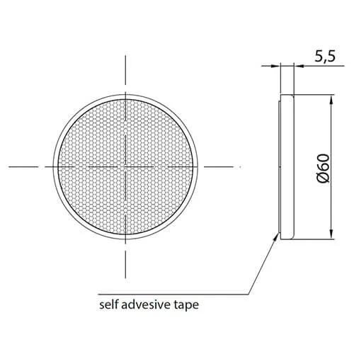 De Fristom VRF-100W is een witte reflector ontworpen voor toepassingen op voertuigen of aanhangwagens waar passieve zichtbaarheid vereist is. Dankzij de plakmontage kan de reflector eenvoudig worden bevestigd op een vlak oppervlak zonder extra montagemateriaal. De afmetingen bedragen ø60 x 5,5 mm.